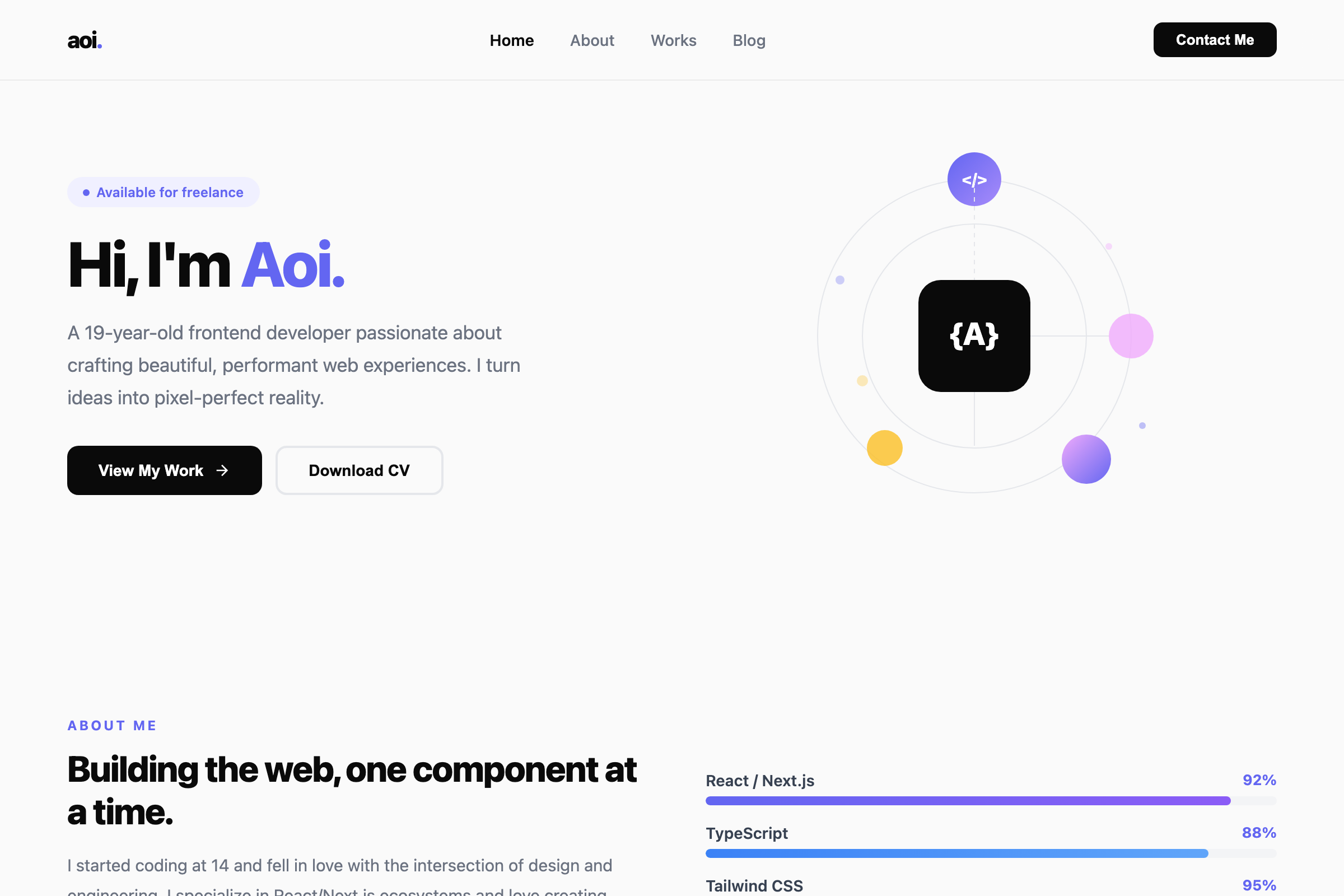 大学1年のフロントエンドエンジニア。中3からプログラミングを始めて、React/Next.jsでのWebアプリ開発が得意です。個人開発でリリースしたタスク管理アプリは月間500ユーザー。UI実装の速さには自信があります。